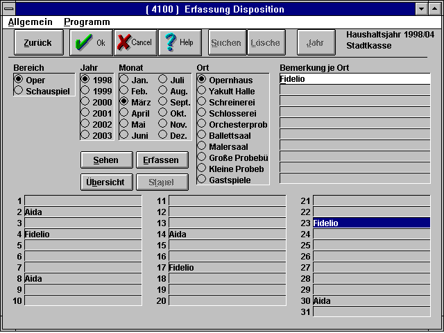 Oper / Schauspiel usw. Aufführungsorte Spielplanübersicht Tages- / Wochen- / Monatsplan